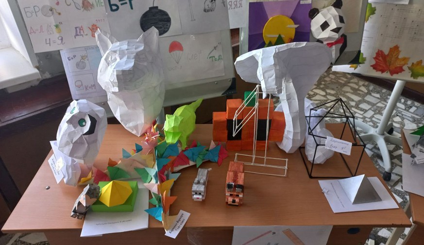 Ребята познакомились с результатами работы творческой мастерской «Волшебные грани». Волшебные грани - это превращение простых трубочек для коктейля, палочек, остатков арматуры, обычных листов бумаги в прекрасные, сказочные формы, это возможность необычно и увлекательно провести время. Выставка «геометрия в рисунках. Кроссворды и лайфхаки для быстрого счета.